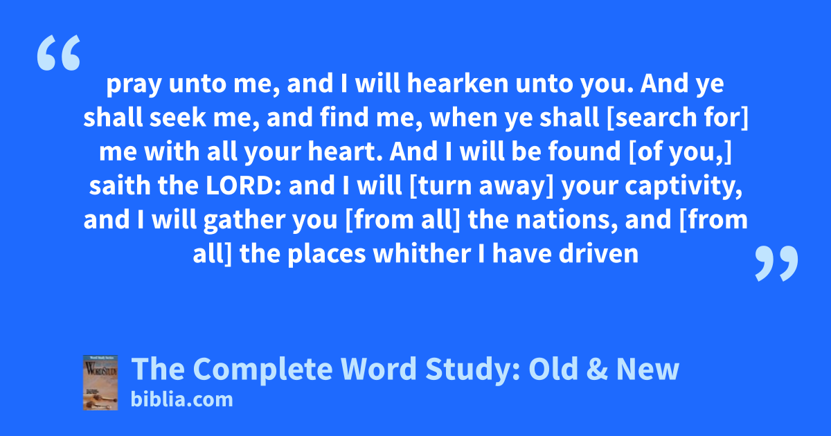 pray unto me, and I will hearken unto you. And ye shall seek me, and find me, when ye shall [search for] me with all your heart. And I will be found [of you,] saith the LORD: and I will [turn away] your captivity, and I will gather you [from all] the nations, and [from all] the places whither I have driven