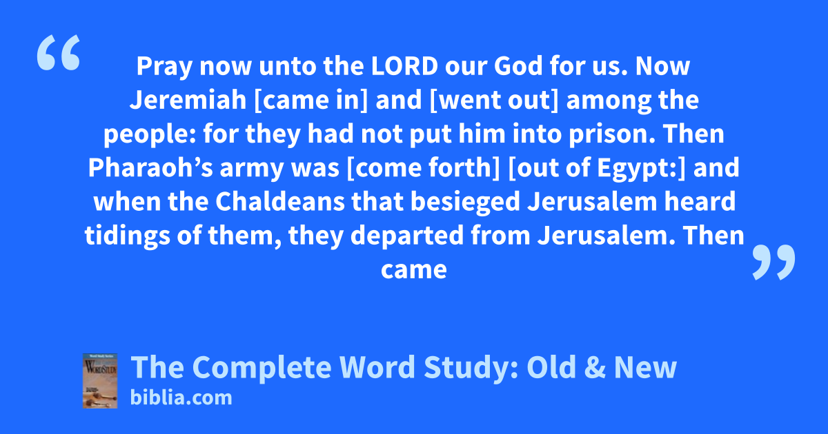 Pray now unto the LORD our God for us. Now Jeremiah [came in] and [went out] among the people: for they had not put him into prison. Then Pharaoh’s army was [come forth] [out of Egypt:] and when the Chaldeans that besieged Jerusalem heard tidings of them, they departed from Jerusalem. Then came