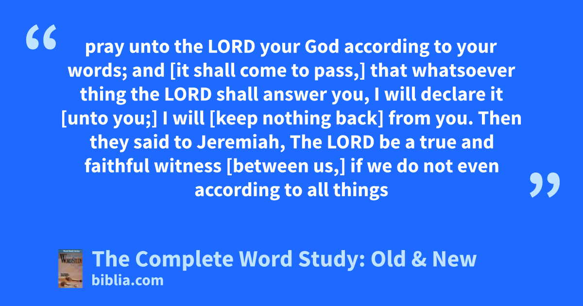 pray unto the LORD your God according to your words; and [it shall come to pass,] that whatsoever thing the LORD shall answer you, I will declare it [unto you;] I will [keep nothing back] from you. Then they said to Jeremiah, The LORD be a true and faithful witness [between us,] if we do not even according to all things