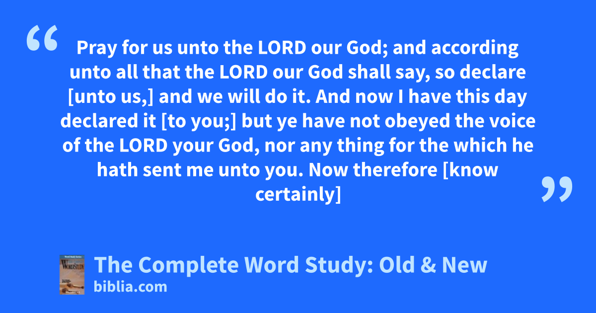 Pray for us unto the LORD our God; and according unto all that the LORD our God shall say, so declare [unto us,] and we will do it. And now I have this day declared it [to you;] but ye have not obeyed the voice of the LORD your God, nor any thing for the which he hath sent me unto you. Now therefore [know certainly]