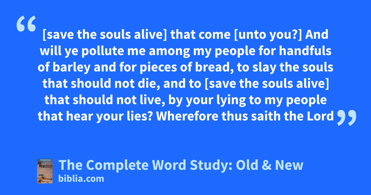 [save the souls alive] that come [unto you?] And will ye pollute me among my people for handfuls of barley and for pieces of bread, to slay the souls that should not die, and to [save the souls alive] that should not live, by your lying to my people that hear your lies? Wherefore thus saith the Lord