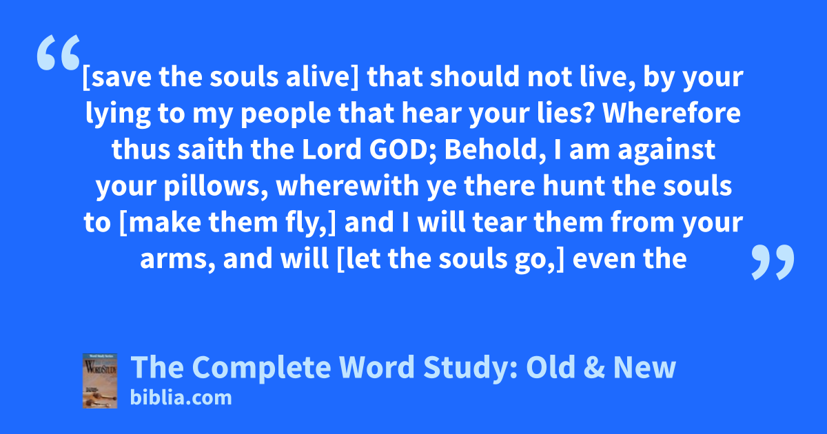 [save the souls alive] that should not live, by your lying to my people that hear your lies? Wherefore thus saith the Lord GOD; Behold, I am against your pillows, wherewith ye there hunt the souls to [make them fly,] and I will tear them from your arms, and will [let the souls go,] even the
