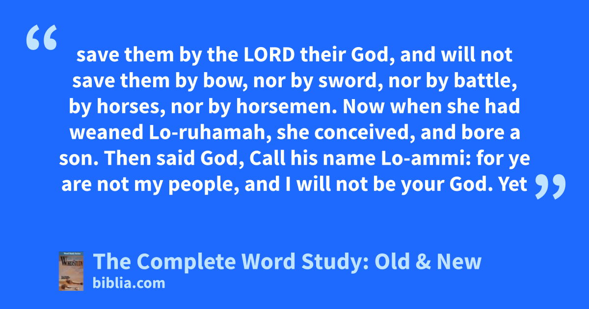 save them by the LORD their God, and will not save them by bow, nor by sword, nor by battle, by horses, nor by horsemen. Now when she had weaned Lo-ruhamah, she conceived, and bore a son. Then said God, Call his name Lo-ammi: for ye are not my people, and I will not be your God. Yet