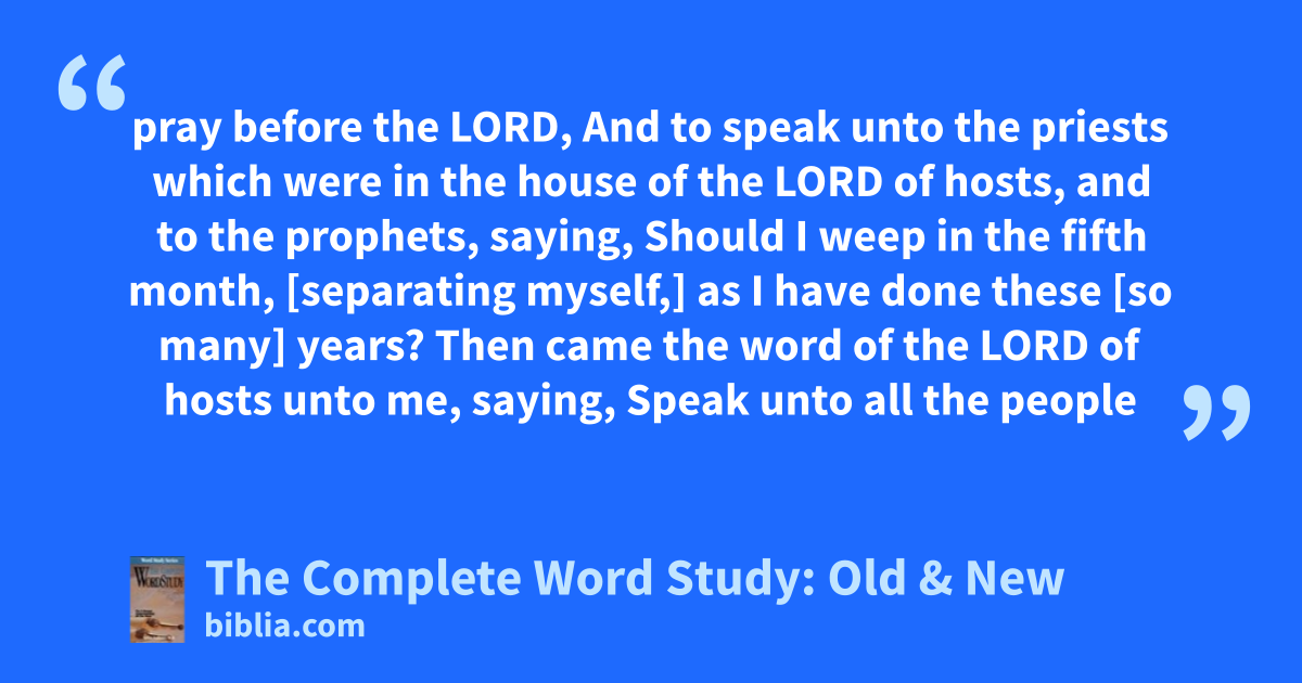 pray before the LORD, And to speak unto the priests which were in the house of the LORD of hosts, and to the prophets, saying, Should I weep in the fifth month, [separating myself,] as I have done these [so many] years? Then came the word of the LORD of hosts unto me, saying, Speak unto all the people