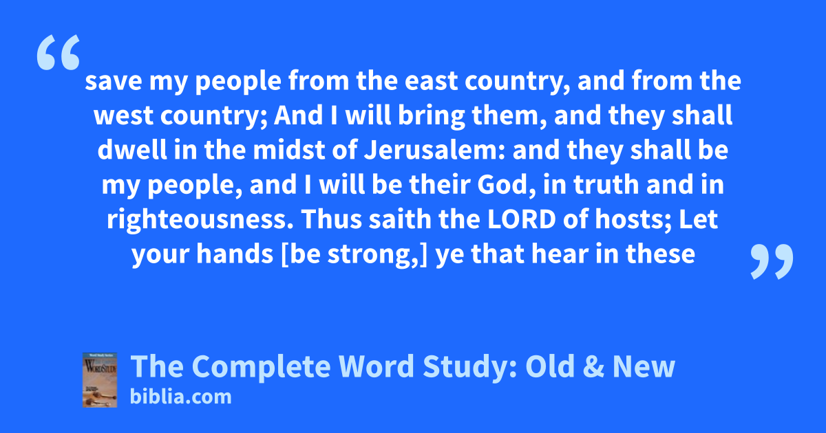 save my people from the east country, and from the west country; And I will bring them, and they shall dwell in the midst of Jerusalem: and they shall be my people, and I will be their God, in truth and in righteousness. Thus saith the LORD of hosts; Let your hands [be strong,] ye that hear in these