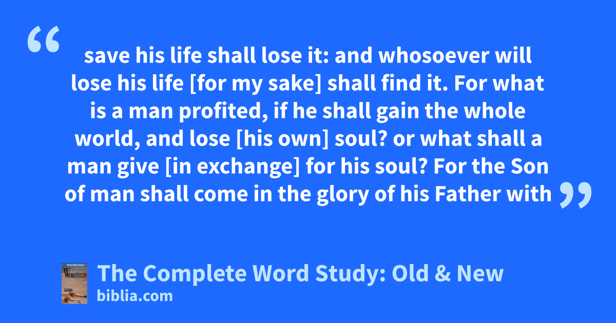save his life shall lose it: and whosoever will lose his life [for my sake] shall find it. For what is a man profited, if he shall gain the whole world, and lose [his own] soul? or what shall a man give [in exchange] for his soul? For the Son of man shall come in the glory of his Father with