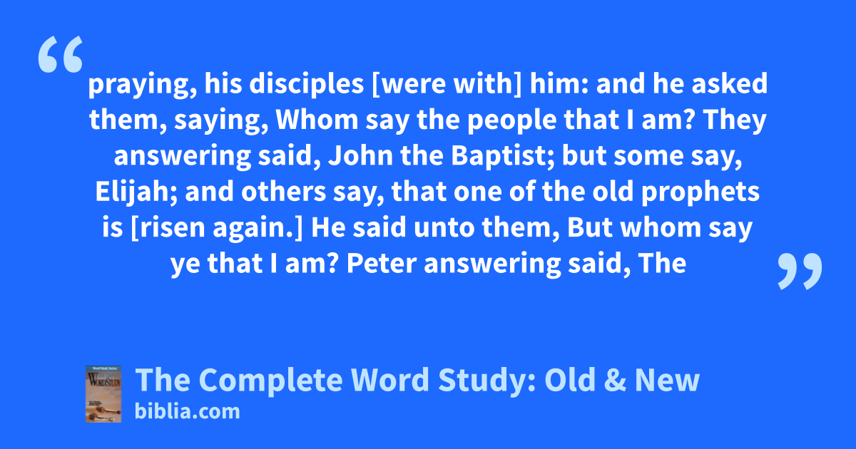 praying, his disciples [were with] him: and he asked them, saying, Whom say the people that I am? They answering said, John the Baptist; but some say, Elijah; and others say, that one of the old prophets is [risen again.] He said unto them, But whom say ye that I am? Peter answering said, The