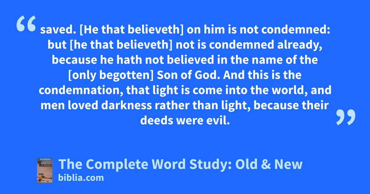 saved. [He that believeth] on him is not condemned: but [he that believeth] not is condemned already, because he hath not believed in the name of the [only begotten] Son of God. And this is the condemnation, that light is come into the world, and men loved darkness rather than light, because their deeds were evil.