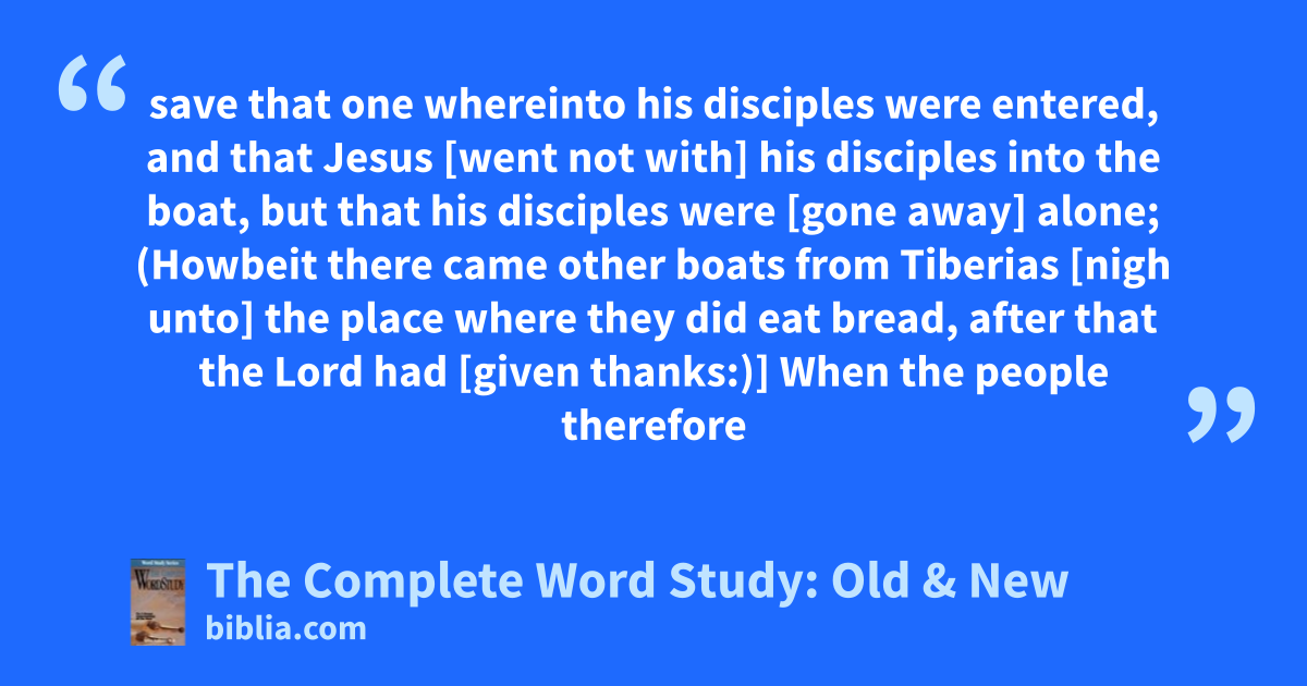 save that one whereinto his disciples were entered, and that Jesus [went not with] his disciples into the boat, but that his disciples were [gone away] alone; (Howbeit there came other boats from Tiberias [nigh unto] the place where they did eat bread, after that the Lord had [given thanks:)] When the people therefore