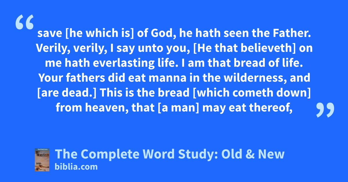 save [he which is] of God, he hath seen the Father. Verily, verily, I say unto you, [He that believeth] on me hath everlasting life. I am that bread of life. Your fathers did eat manna in the wilderness, and [are dead.] This is the bread [which cometh down] from heaven, that [a man] may eat thereof,