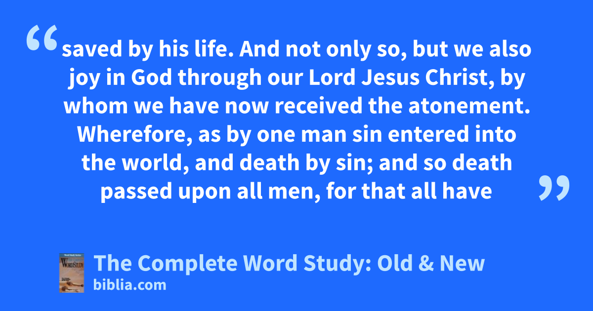 saved by his life. And not only so, but we also joy in God through our Lord Jesus Christ, by whom we have now received the atonement. Wherefore, as by one man sin entered into the world, and death by sin; and so death passed upon all men, for that all have