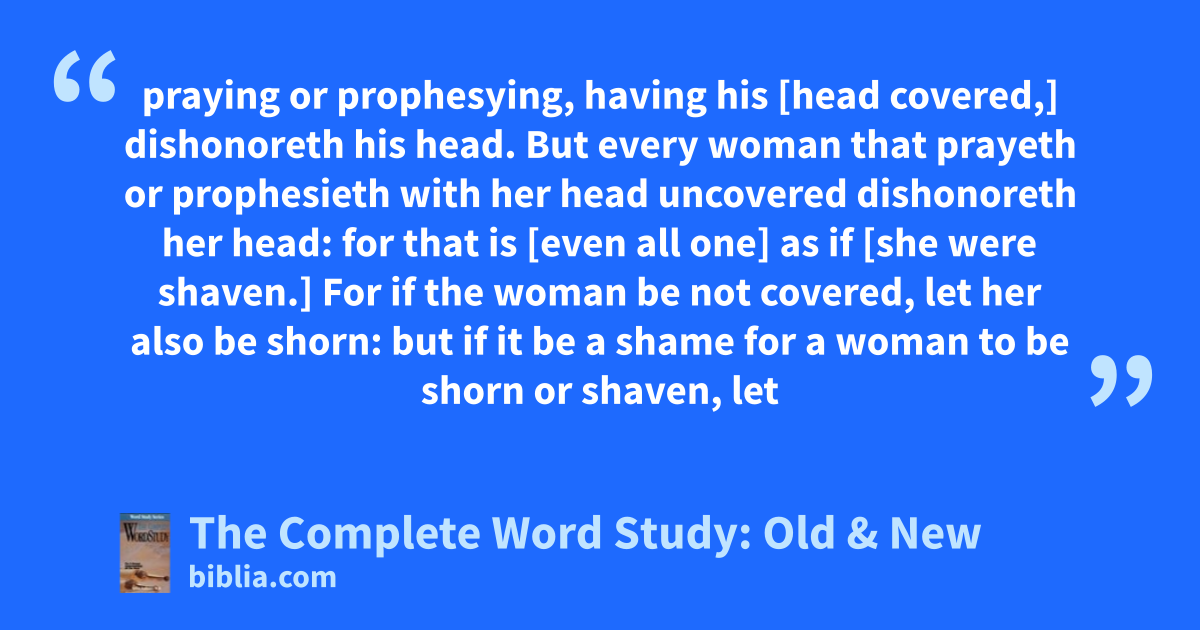 praying or prophesying, having his [head covered,] dishonoreth his head. But every woman that prayeth or prophesieth with her head uncovered dishonoreth her head: for that is [even all one] as if [she were shaven.] For if the woman be not covered, let her also be shorn: but if it be a shame for a woman to be shorn or shaven, let