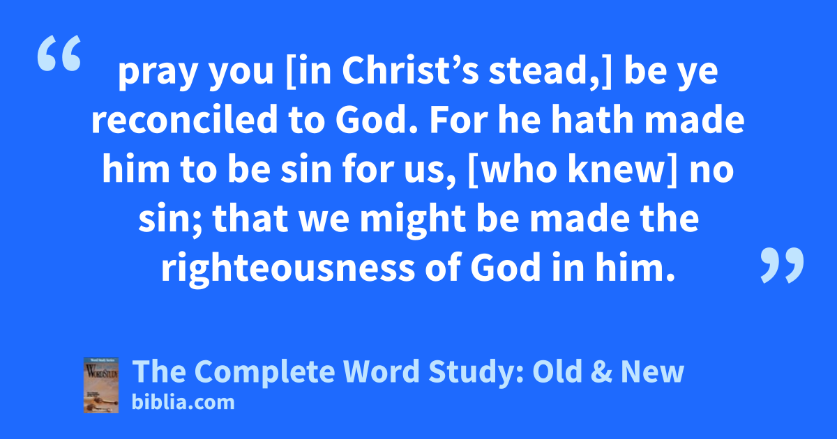 pray you [in Christ’s stead,] be ye reconciled to God. For he hath made him to be sin for us, [who knew] no sin; that we might be made the righteousness of God in him.