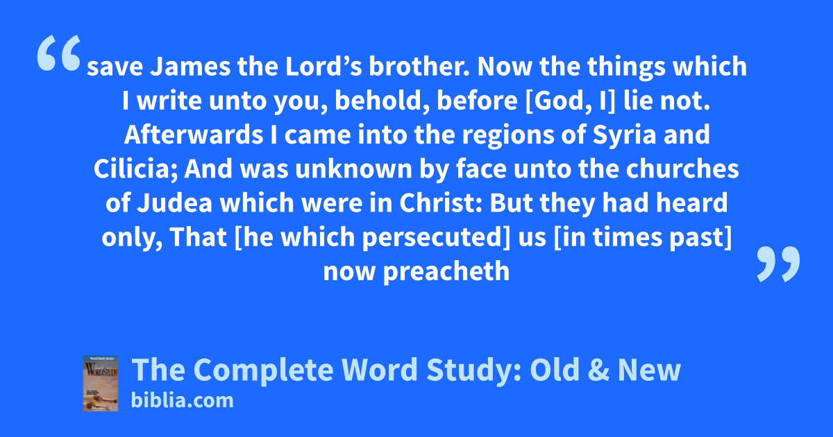 save James the Lord’s brother. Now the things which I write unto you, behold, before [God, I] lie not. Afterwards I came into the regions of Syria and Cilicia; And was unknown by face unto the churches of Judea which were in Christ: But they had heard only, That [he which persecuted] us [in times past] now preacheth