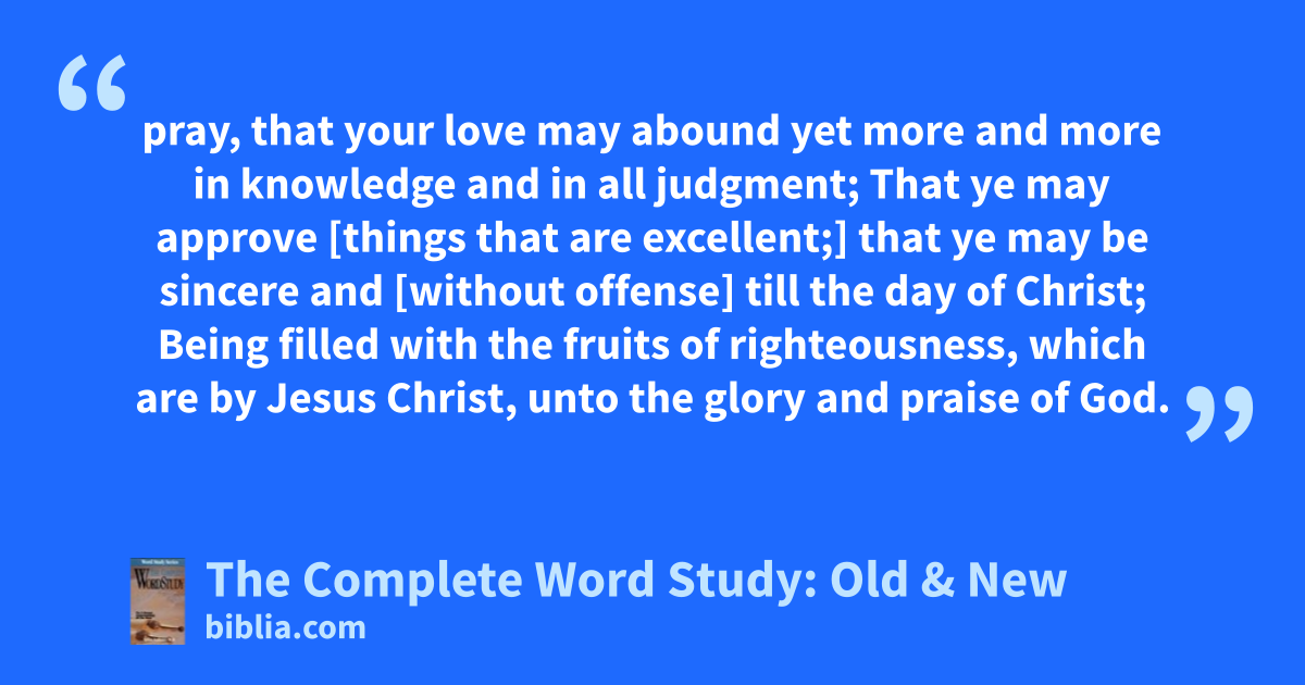pray, that your love may abound yet more and more in knowledge and in all judgment; That ye may approve [things that are excellent;] that ye may be sincere and [without offense] till the day of Christ; Being filled with the fruits of righteousness, which are by Jesus Christ, unto the glory and praise of God.