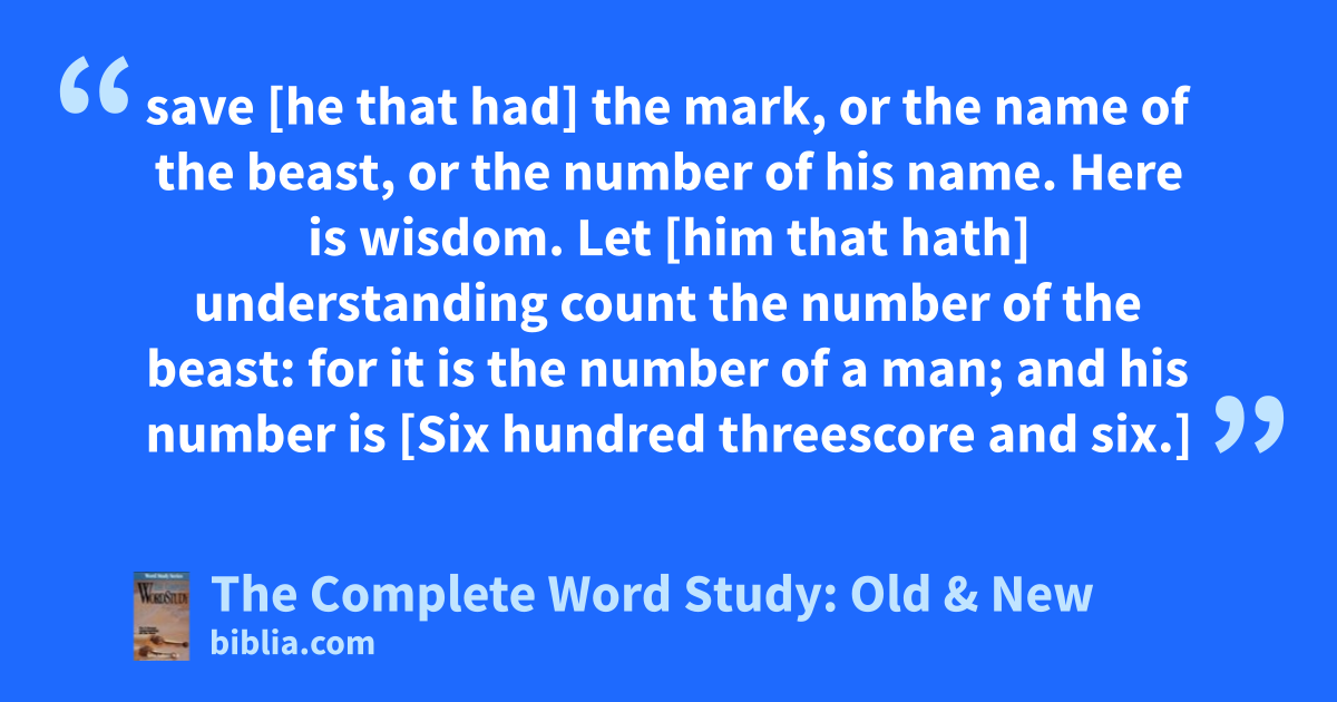 save [he that had] the mark, or the name of the beast, or the number of his name. Here is wisdom. Let [him that hath] understanding count the number of the beast: for it is the number of a man; and his number is [Six hundred threescore and six.]