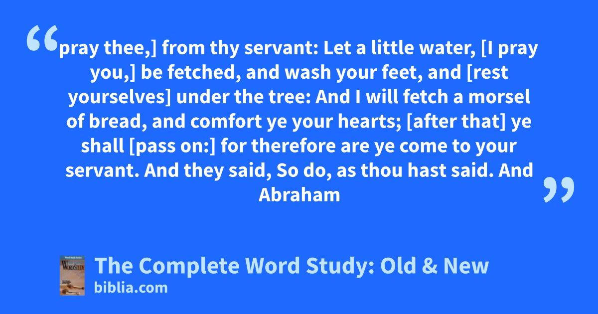 pray thee,] from thy servant: Let a little water, [I pray you,] be fetched, and wash your feet, and [rest yourselves] under the tree: And I will fetch a morsel of bread, and comfort ye your hearts; [after that] ye shall [pass on:] for therefore are ye come to your servant. And they said, So do, as thou hast said. And Abraham