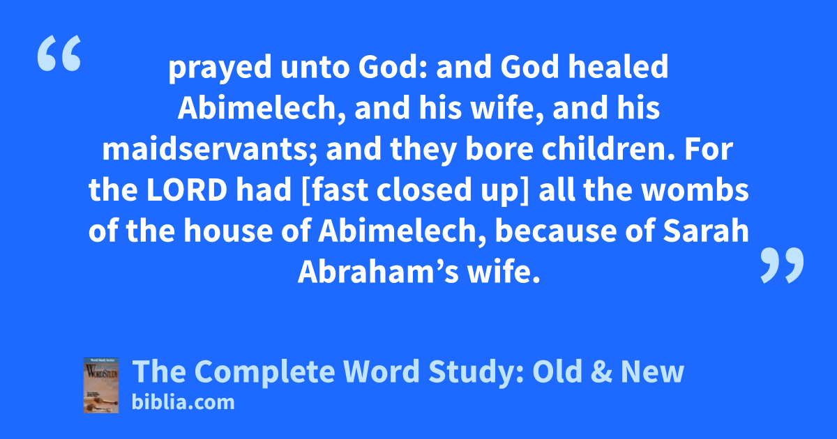 prayed unto God: and God healed Abimelech, and his wife, and his maidservants; and they bore children. For the LORD had [fast closed up] all the wombs of the house of Abimelech, because of Sarah Abraham’s wife.