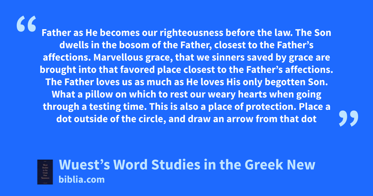 Father as He becomes our righteousness before the law. The Son dwells in the bosom of the Father, closest to the Father’s affections. Marvellous grace, that we sinners saved by grace are brought into that favored place closest to the Father’s affections. The Father loves us as much as He loves His only begotten Son. What a pillow on which to rest our weary hearts when going through a testing time. This is also a place of protection. Place a dot outside of the circle, and draw an arrow from that dot
