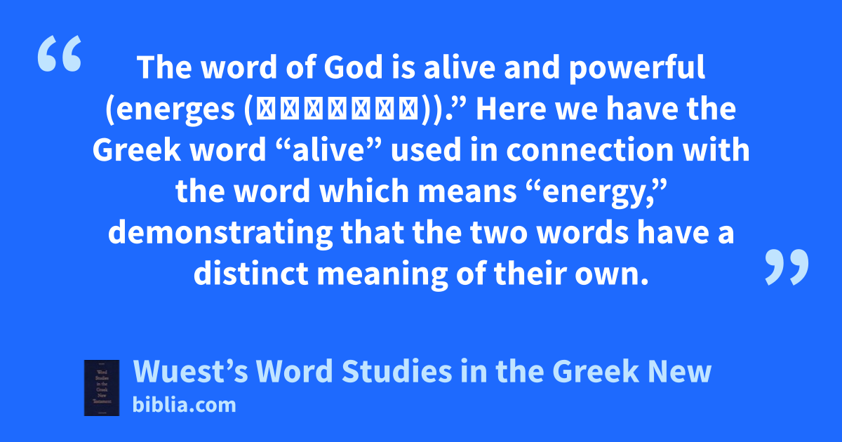 The word of God is alive and powerful (energes (ἐνεργες)).” Here we have the Greek word “alive” used in connection with the word which means “energy,” demonstrating that the two words have a distinct meaning of their own.