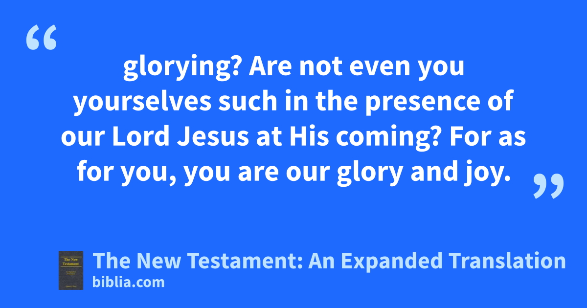 glorying? Are not even you yourselves such in the presence of our Lord Jesus at His coming? For as for you, you are our glory and joy.