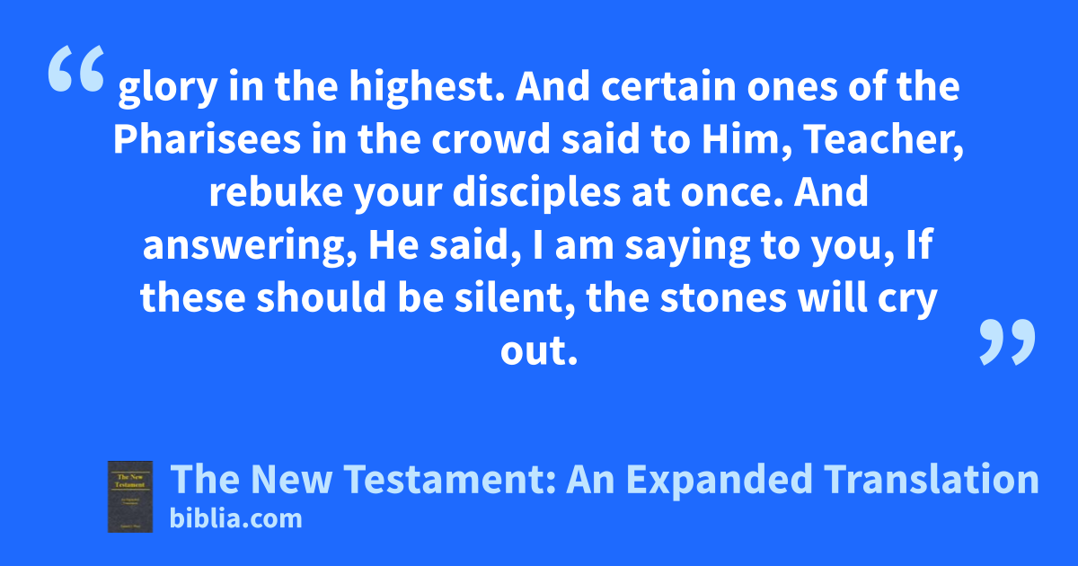 glory in the highest. And certain ones of the Pharisees in the crowd said to Him, Teacher, rebuke your disciples at once. And answering, He said, I am saying to you, If these should be silent, the stones will cry out.