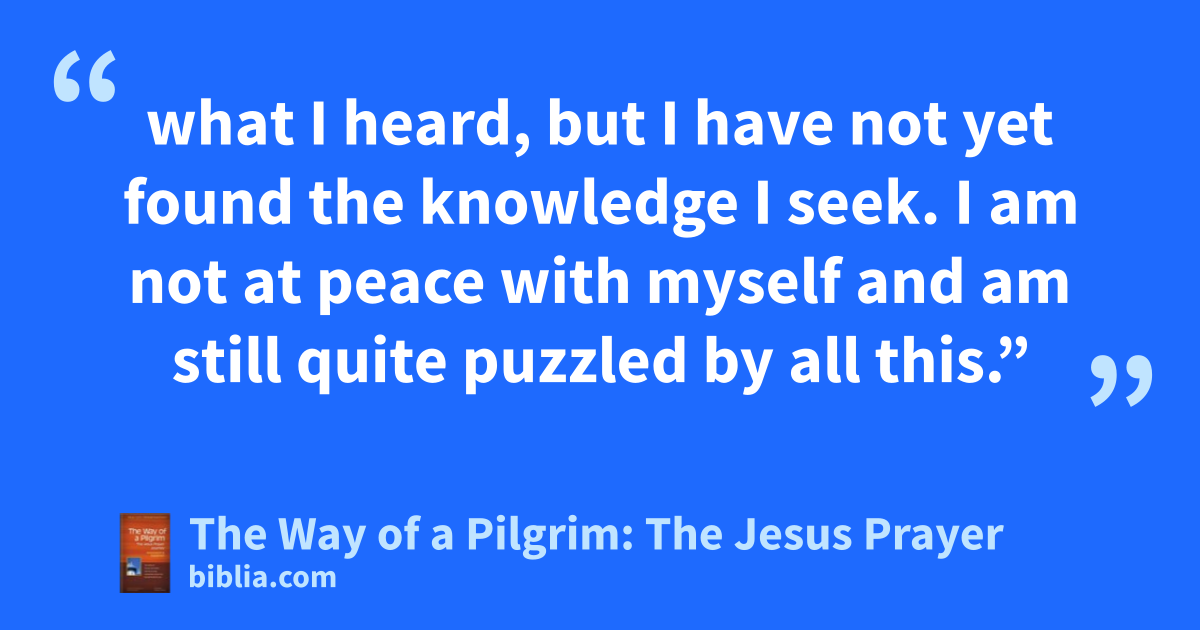 what I heard, but I have not yet found the knowledge I seek. I am not at peace with myself and am still quite puzzled by all this.”