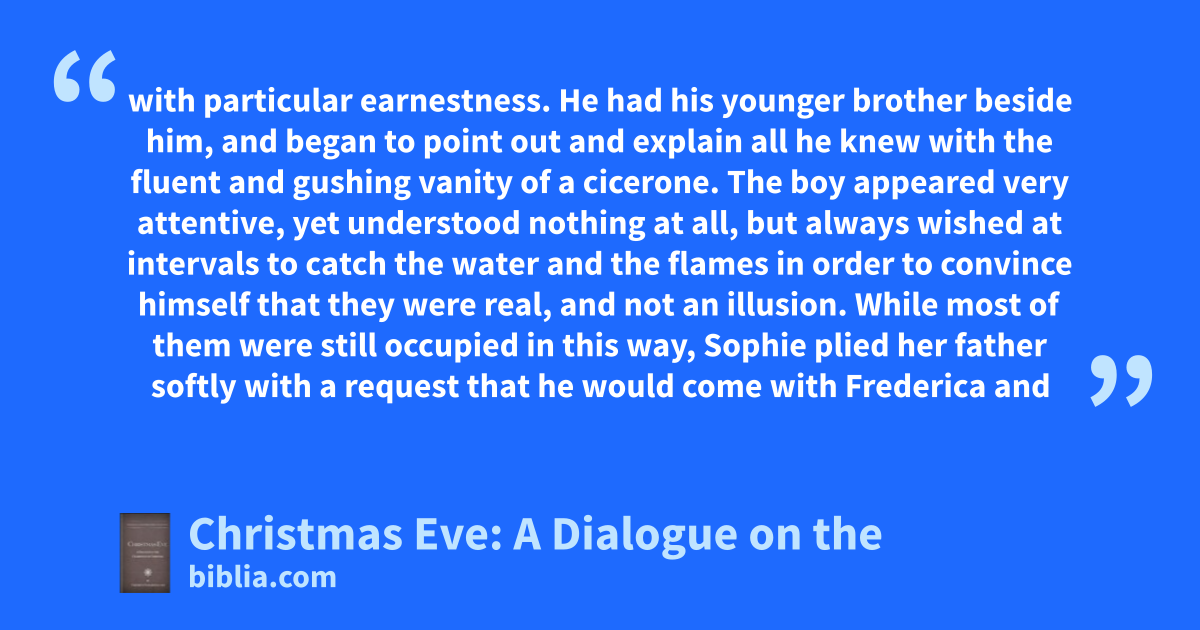 with particular earnestness. He had his younger brother beside him, and began to point out and explain all he knew with the fluent and gushing vanity of a cicerone. The boy appeared very attentive, yet understood nothing at all, but always wished at intervals to catch the water and the flames in order to convince himself that they were real, and not an illusion. While most of them were still occupied in this way, Sophie plied her father softly with a request that he would come with Frederica and