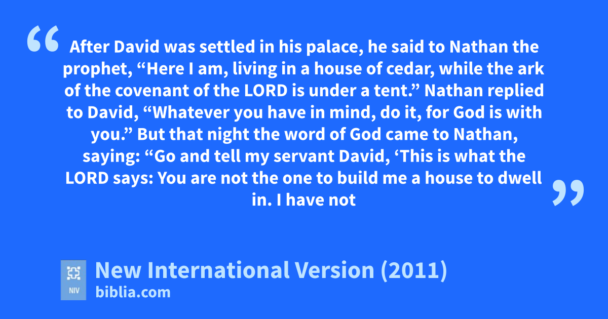 17 After David was settled in his palace, he said to Nathan the prophet, “Here I am, living in a house of cedar, while the ark of the covenant of the Lord is under a tent.c”