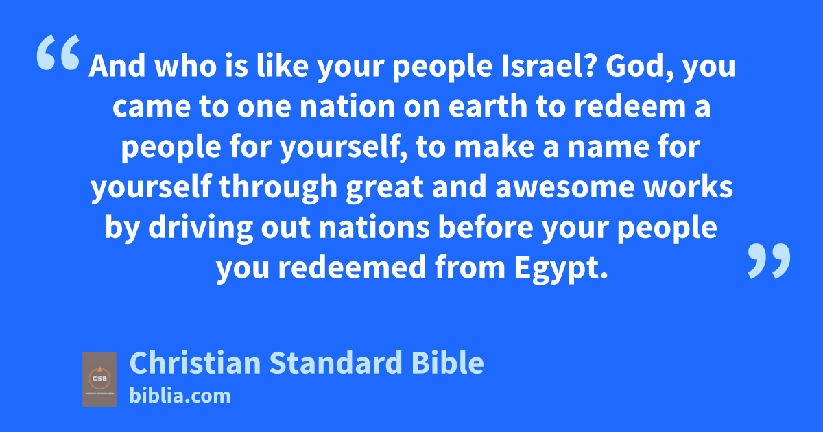 Who am I, Lord God, and what is my house that you have brought me this far? 17 This was a little thing to you,A God, for you have spoken about your servant’s house in the distant future. You regard me as a man of distinction,B Lord God. 18 What more can David say to you for honoring your servant? You know your servant. 19 Lord, you have done this whole great thing, making known all these great promises for the sake of your servant and according to your will.u 20 Lord, there is no one like you, and there is no God besides you, as all we have heard confirms. 21 And who is like your people Israel? God, you came to one nation on earth to redeem a people for yourself, to make a name for yourself through great and awesome works by driving out nations before your people you redeemed from Egypt.v 22 You made your people Israel your own people forever, and you, Lord, have become their God.w