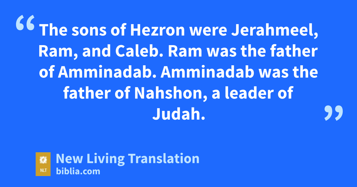 25 The sons of Jerahmeel, the oldest son of Hezron, were Ram (the firstborn), Bunah, Oren, Ozem, and Ahijah. 26 Jerahmeel had a second wife named Atarah. She was the mother of Onam.