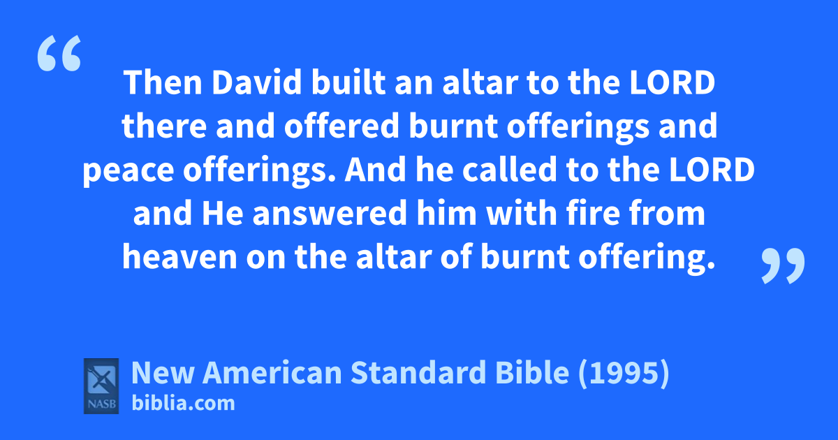 26 Then David built an altar to the Lord there and offered burnt offerings and peace offerings. And he called to the Lord and aHe answered him with fire from heaven on the altar of burnt offering.