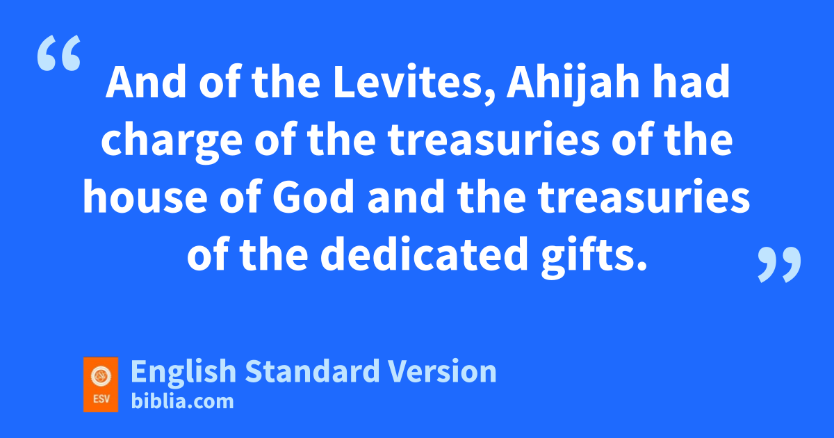 20 And of the Levites, Ahijah had charge of othe treasuries of the house of God and the treasuries of the dedicated gifts. 21 The sons of Ladan, the sons of the Gershonites belonging to Ladan, the heads of the fathers’ houses belonging to Ladan the Gershonite: pJehieli.3