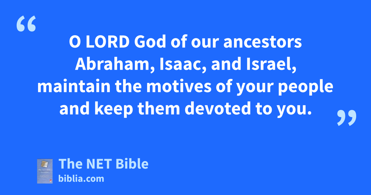 29:14 “But who am I and who are my people, that we should be in a position to contribute this much?15 Indeed, everything comes from you, and we have simply given back to you what is yours.16 29:15 For we are resident foreigners and nomads in your presence, like all our ancestors;17 our days are like a shadow on the earth, without security.18 29:16 O Lord our God, all this wealth, which we have collected to build a temple for you to honor your holy name, comes from you; it all belongs to you. 29:17 I know, my God, that you examine thoughts19 and are pleased with integrity. With pure motives20 I contribute all this; and now I look with joy as your people who have gathered here contribute to you. 29:18 O Lord God of our ancestors Abraham, Isaac, and Israel, maintain the motives of your people and keep them devoted to you.21 29:19 Make my son Solomon willing to obey your commands, rules, and regulations, and to complete building the palace for which I have made preparations.”22