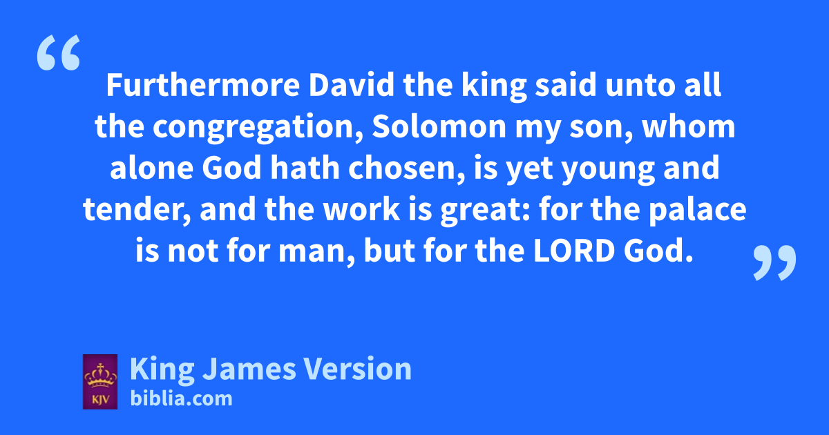 29 *Furthermore David the king said unto all the congregation, Solomon my son, whom alone God hath chosen, is yet ayoung and tender, and the work is great: for the bpalace is not for man, but for the Lord God. 2 Now I have prepared with all my might for the house of my God the gold for things to be made of gold, and the silver for things of silver, and the brass for things of brass, the iron for things of iron, and wood for things of wood; conyx stones, and stones dto be set, eglistering stones, and fof divers colours, and all manner of precious stones, and gmarble stones in abundance. 3 Moreover, because I have set my affection to the house of my God, I have of mine own proper good, of gold and silver, which I have given to the house of my God, over and above all that I have prepared for the holy house, 4 Even hthree thousand talents of gold, of the gold of iOphir, and seven thousand talents of jrefined silver, to overlay the walls of the houses withal: 5 The gold for things of gold, and the silver for things of silver, and for all manner of work to be made by the hands of artificers. And who then is willing †to consecrate his service this day unto the Lord?