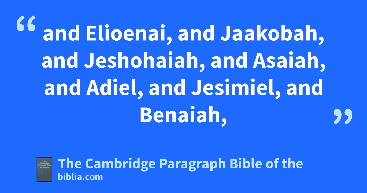 34 And Meshobab, and Jamlech, and Joshah the son of Amaziah, 35 and Joel, and Jehu the son of Josibiah, the son of Seraiah, the son of Asiel, 36 and Elioenai, and Jaakobah, and Jeshohaiah, and Asaiah, and Adiel, and Jesimiel, and Benaiah, 37 and Ziza the son of Shiphi, the son of Allon, the son of Jedaiah, the son of Shimri, the son of Shemaiah; 38 these * mentioned by their names were princes in their families: and gthe house of their fathers hincreased greatly. 39 And they went to the entrance of iGedor, even unto the east side of the valley, to seek pasture for their flocks. 40 And they found fat pasture and good, and the land was kwide, and lquiet, and peaceable; for they of Ham had dwelt there of old. 41 * And m these written by name came in the days of Hezekiah king of Judah, and smote their tents, and nthe habitations that were found there, and destroyed them utterly unto this day, and dwelt in their orooms: because there was pasture there for their flocks. 42 And some of them, even of the sons of Simeon, five hundred men, went to pmount Seir, having for their captains Pelatiah, and Neariah, and Rephaiah, and Uzziel, the sons of Ishi. 43 And they smote qthe rest of the Amalekites that were escaped, and dwelt there unto this day.
