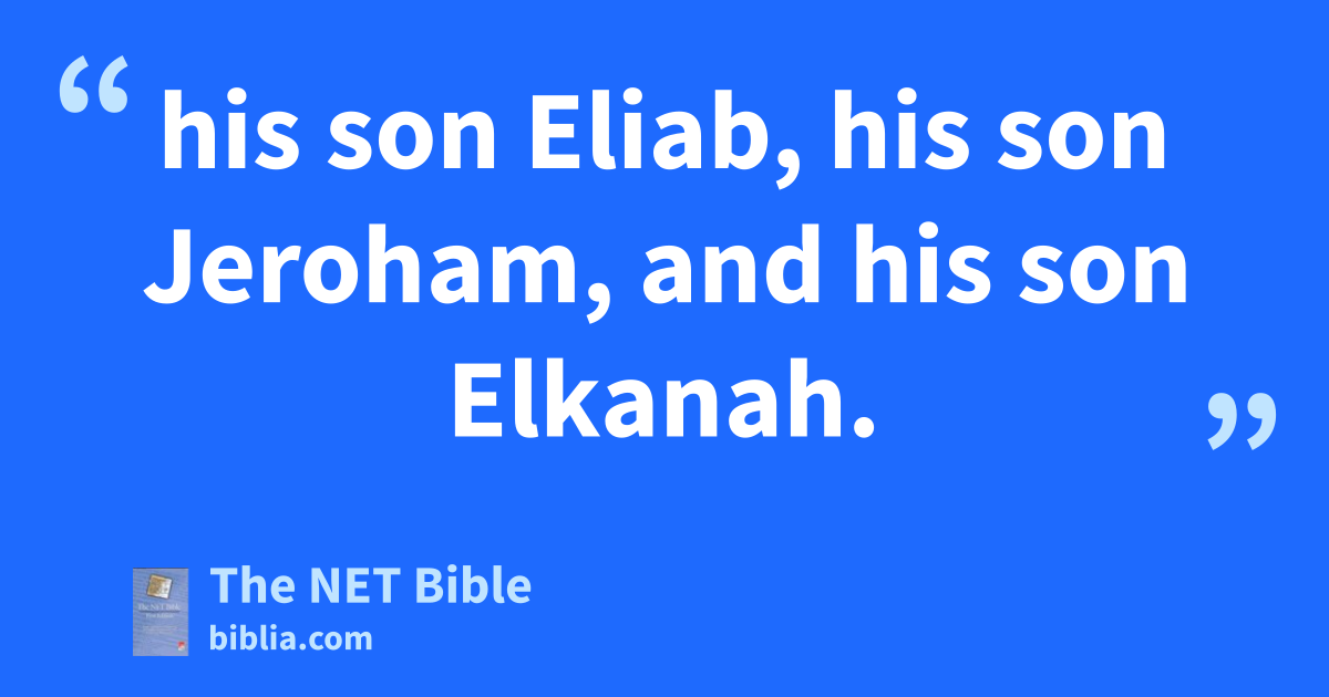 Amasai, Ahimoth,8 6:26 his son Elkanah,9 his son Zophai, his son Nahath, 6:27 his son Eliab, his son Jeroham, and his son Elkanah.10