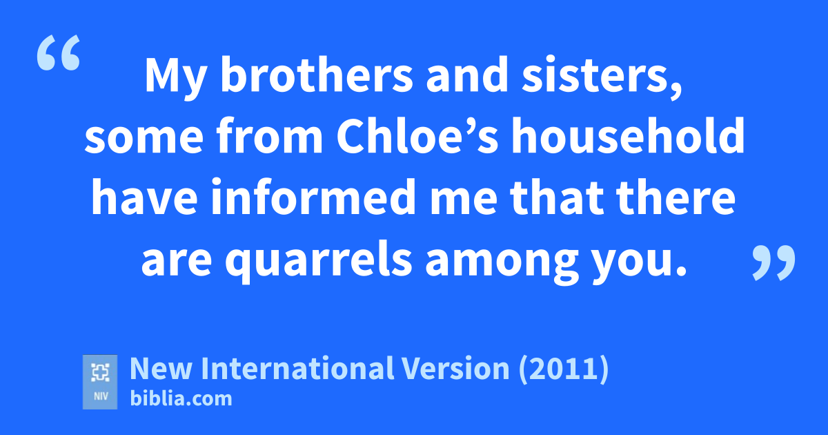 10 I appeal to you, brothers and sisters,a t in the name of our Lord Jesus Christ, that all of you agree with one another in what you say and that there be no divisions among you,u but that you be perfectly unitedv in mind and thought. 11 My brothers and sisters, some from Chloe’s householdw have informed me that there are quarrels among you. 12 What I mean is this: One of you says, “I follow Paul”;x another, “I follow Apollos”;y another, “I follow Cephasb”;z still another, “I follow Christ.”