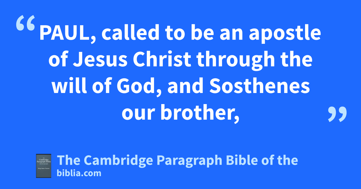 I. Paul, acalled to be an apostle of Jesus Christ bthrough the will of God, and cSosthenes our brother, 2 unto the church of God which is at dCorinth, eto them that are sanctified in Christ Jesus, fcalled to be gsaints, with all that in every place hcall upon the name of Jesus Christ iour Lord, jboth theirs and ours: 3 kgrace be unto you, and peace, from God our Father, and from the Lord Jesus Christ.