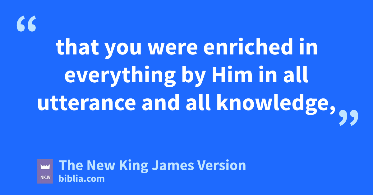 4 iI thank my God always concerning you for the grace of God which was given to you by Christ Jesus, 5 that you were enriched in everything by Him jin all 2utterance and all knowledge, 6 even as kthe testimony of Christ was confirmed 3in you, 7 so that you come short in no gift, eagerly lwaiting for the revelation of our Lord Jesus Christ, 8 mwho will also confirm you to the end, nthat you may be blameless in the day of our Lord Jesus Christ. 9 oGod is faithful, by whom you were called into pthe fellowship of His Son, Jesus Christ our Lord.