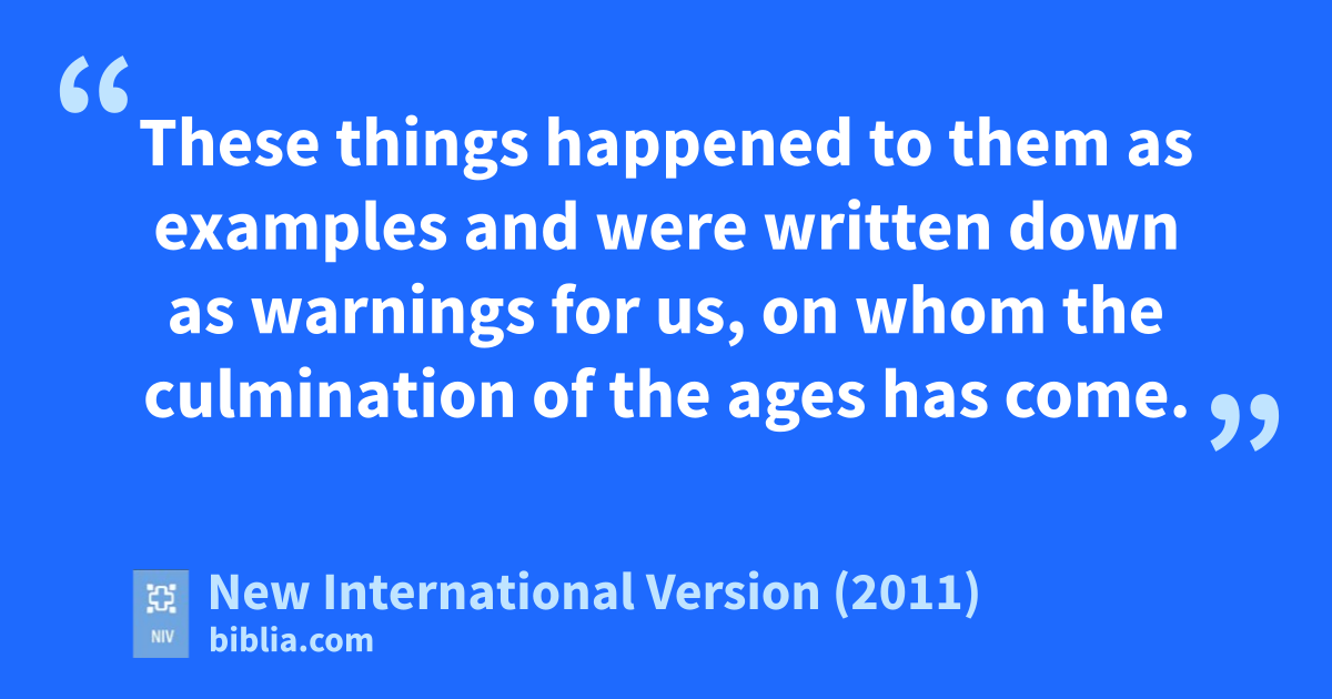 11 These things happened to them as examplesi and were written down as warnings for us,j on whom the culmination of the ages has come.k 12 So, if you think you are standing firm,l be careful that you don’t fall! 13 No temptationc has overtaken you except what is common to mankind. And God is faithful;m he will not let you be temptedd beyond what you can bear.n But when you are tempted,e he will also provide a way out so that you can endure it.