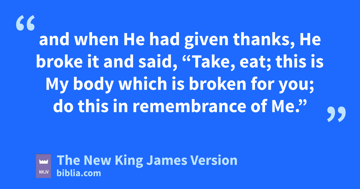 23 For tI received from the Lord that which I also delivered to you: uthat the Lord Jesus on the same night in which He was betrayed took bread; 24 and when He had given thanks, He broke it and said, 4“Take, eat; this is My body which is 5broken for you; do this in remembrance of Me.” 25 In the same manner He also took the cup after supper, saying, “This cup is the new covenant in My blood. This do, as often as you drink it, in remembrance of Me.”