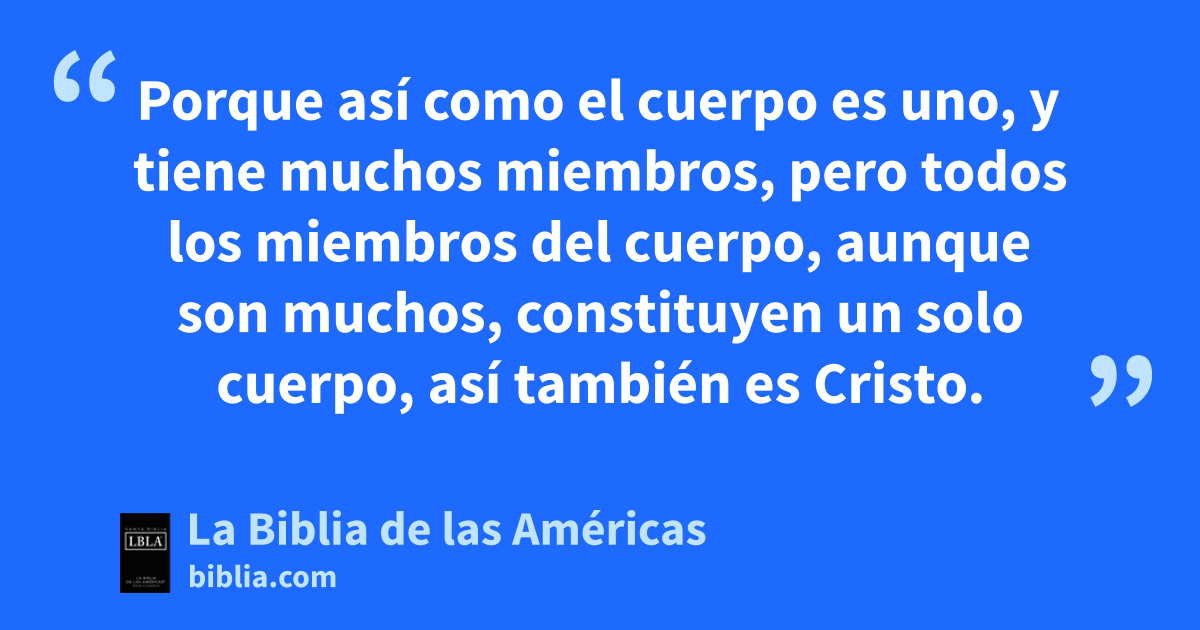 ¶12 Porque así como el cuerpo es uno, y tiene muchos miembros, pero todos los miembros del cuerpo, aunque son muchos, constituyen un solo cuerpoa, así también es Cristob.