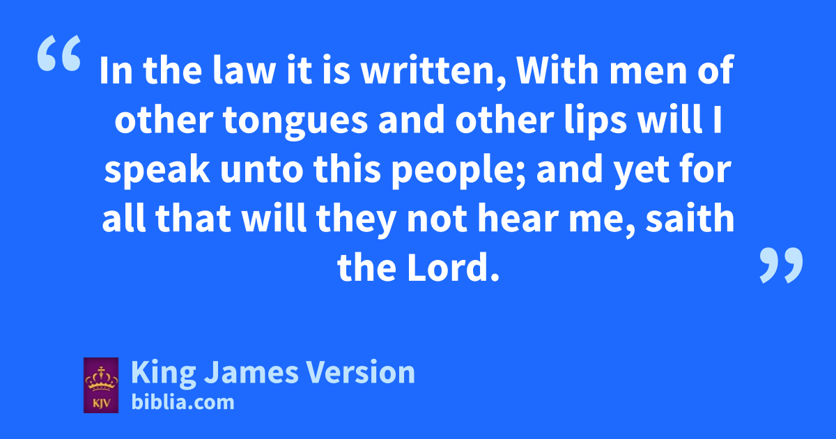 14 aFollow after charity, and aadesire bspiritual gifts, but rather that ye may cprophesy. 2 For he that dspeaketh in an unknown tongue speaketh not unto men, but unto God: for no man †eunderstandeth him; howbeit in the spirit he speaketh mysteries. 3 But he that cprophesieth speaketh unto men to fedification, and gexhortation, and hcomfort. 4 He that speaketh in an unknown tongue edifieth himself; but he that cprophesieth iedifieth the church. 5 I would that ye all dspake with tongues, but jrather that ye cprophesied: for greater is he that prophesieth than he that speaketh with tongues, kexcept he interpret, that the church may receive edifying. 6 Now, brethren, if I come unto you speaking with tongues, what shall I profit you, except I shall speak to you either by lrevelation, or by mknowledge, or by cprophesying, or by ndoctrine? 7 And even things without life giving sound, whether pipe or harp, except they give a distinction in the ||osounds, how shall it be known what is piped or harped? 8 For if pthe trumpet give an uncertain sound, who shall prepare himself to qthe battle? 9 So likewise ye, except ye utter by the tongue words †easy to be understood, how shall it be known what is spoken? for ye shall rspeak into the air. 10 There are, sit may be, tso many ukinds of voices in the world, and none of them is without signification. 11 Therefore if I know not the meaning of the voice, I shall be unto him that speaketh a xbarbarian, and he that speaketh shall be a barbarian unto me. 12 Even so ye, forasmuch as ye are zealous †of spiritual gifts, seek that ye may excel to fthe edifying of the church. 13 Wherefore let him that dspeaketh in an unknown tongue pray kthat he may interpret. 14 For if I pray in an unknown tongue, my spirit prayeth, but my understanding is unfruitful. 15 What is it then? I will pray with the spirit, and I will pray with the understanding also: yI will sing with the spirit, and I will sing zwith the understanding also. 16 Else when thou shalt abless with the spirit, how shall he that occupieth the room of the bunlearned say cAmen at dthy giving of thanks, seeing he understandeth not what thou sayest? 17 For thou verily givest dthanks well, but the other is not edified. 18 I thank my God, I cspeak with tongues more than ye all: 19 Yet in the church I had rather speak five words with my understanding, that by my voice I might eteach others also, than ten thousand words in an unknown tongue. 20 Brethren, fbe not children in understanding: howbeit in malice gbe ye children, but in understanding be †men. 21 hIn the law it is written, iWith men of other tongues and other lips will I speak unto this people; and yet for all that will they not hear me, saith the Lord. 22 Wherefore tongues are for a sign, not to them that believe, but to them that believe not: but kprophesying serveth not for them that believe not, but for them which believe. 23 If therefore the whole church be come together into one place, and all speak with tongues, and there come in those that are bunlearned, or unbelievers, lwill they not say that ye are mad? 24 But if all kprophesy, and there come in one that believeth not, or one bunlearned, he is mconvinced of all, he is njudged of all: 25 And thus are the secrets of his heart made manifest; and so ofalling down on his face phe will worship God, and qreport that God is in you of a truth.