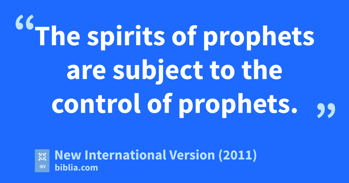 29 Two or three prophetsf should speak, and the others should weigh carefully what is said.g 30 And if a revelation comes to someone who is sitting down, the first speaker should stop. 31 For you can all prophesy in turn so that everyone may be instructed and encouraged. 32 The spirits of prophets are subject to the control of prophets.h 33 For God is not a God of disorderi but of peacej—as in all the congregationsk of the Lord’s people.l
