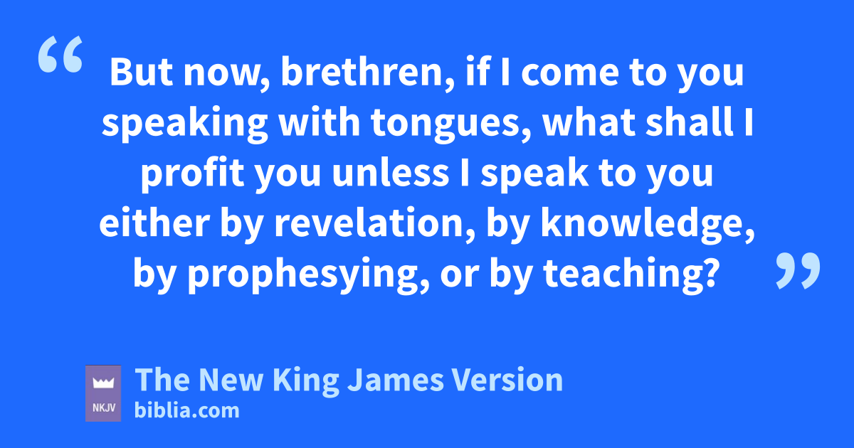 6 But now, brethren, if I come to you speaking with tongues, what shall I profit you unless I speak to you either by frevelation, by knowledge, by prophesying, or by teaching? 7 Even things without life, whether flute or harp, when they make a sound, unless they make a distinction in the sounds, how will it be known what is piped or played? 8 For if the trumpet makes an uncertain sound, who will prepare for battle? 9 So likewise you, unless you utter by the tongue words easy to understand, how will it be known what is spoken? For you will be speaking into the air. 10 There are, it may be, so many kinds of languages in the world, and none of them is without 2significance. 11 Therefore, if I do not know the meaning of the language, I shall be a 3foreigner to him who speaks, and he who speaks will be a foreigner to me. 12 Even so you, since you are 4zealous for spiritual gifts, let it be for the 5edification of the church that you seek to excel.