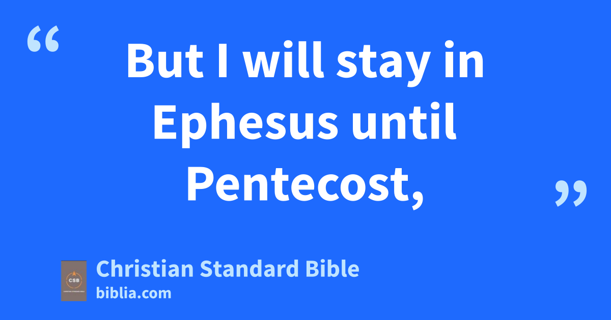 5 I will come to you after I pass through Macedoniaag—for I will be traveling through Macedonia—6 and perhaps I will remain with you or even spend the winter, so that you may send me on my way wherever I go. 7 I don’t want to see you now just in passing, since I hope to spend some time with you, if the Lord allows.ah 8 But I will stay in Ephesusai until Pentecost,aj 9 because a wide doorak for effective ministry has opened for meC—yet many oppose me. 10 If Timothy comes, see that he has nothing to fear while with you, because he is doing the Lord’s work,al just as I am. 11 So let no one look downam on him. Send him on his way in peace so that he can come to me, because I am expecting him with the brothers.