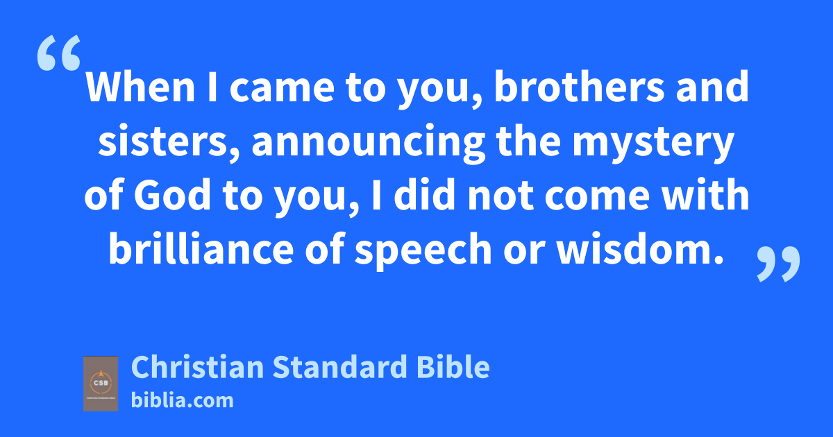 2 When I came to you, brothers and sisters, announcing the mysteryE of God to you, I did not come with brilliancec of speechd or wisdom. 2 I decided to know nothing among you except Jesus Christ and him crucified.e 3 I came to you in weakness,f in fear,g and in much trembling.h 4 My speechi and my preaching were not with persuasivej words of wisdomF but with a demonstration of the Spirit’s power, 5 so that your faith might not be based on human wisdom but on God’s power.k