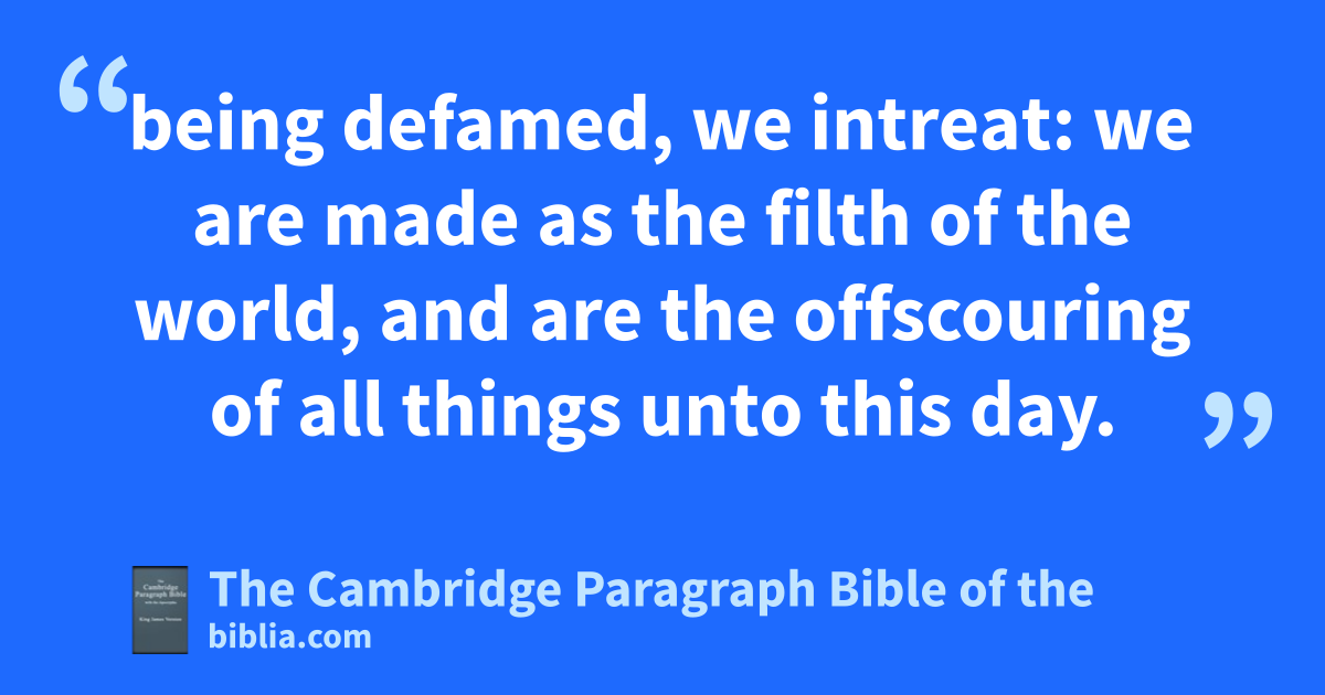 6 And these things, brethren, mI have nin a figure transferred to myself and to Apollos for your sakes; that ye might learn in us onot to think of men above that which is written, pthat no one of you qbe puffed up for one against another. 7 For who * rmaketh thee to differ from another? and swhat hast thou that thou didst not treceive? now if thou didst receive it, why dost thou glory, as if thou hadst not received it? 8 Now ye are full, unow ye are rich, ye have reigned as kings without us: and xI would to God ye did reign, that we also might reign with you. 9 For yI think that God hath set forth * us the apostles last, zas it were appointed to death: for awe are made a * spectacle unto the world, and to angels, and to men. 10 bWe are fools for Christ’s sake, but bbye are wise in Christ; cwe are weak, but ye are strong; ye are honourable, but we are despised. 11 Even unto this present hour we both dhunger, and dthirst, and deare naked, and fare buffeted, and have no certain dwelling place; 12 and glabour, working with our own hands: hbeing reviled, we bless; ibeing persecuted, we suffer it: 13 being defamed, we intreat: we are made jas the filth of the world, and are kthe offscouring of all things unto this day. 14 I write not these things to lshame you, but mas my beloved sons I warn you. 15 For though you have ten thousand ninstructors in Christ, yet have ye not many fathers: for oin Christ Jesus I have begotten you through the gospel. 16 Wherefore I beseech you, pbe ye followers of me. 17 For this cause have I sent unto you qTimotheus, rwho is my beloved son, and sfaithful in the Lord, who shall tbring you into remembrance of my ways which be in Christ, uas I teach every where in every church. 18 Now xsome are ypuffed up, as though I would not come to you. 19 zBut I will come to you shortly, aif the Lord will, and will know, not the speech of them which are ypuffed up, but the power. 20 For the kingdom of God is not in word, but bin power. 21 What will ye? cshall I come unto you dwith a rod, or in love, and in ethe spirit of meekness?