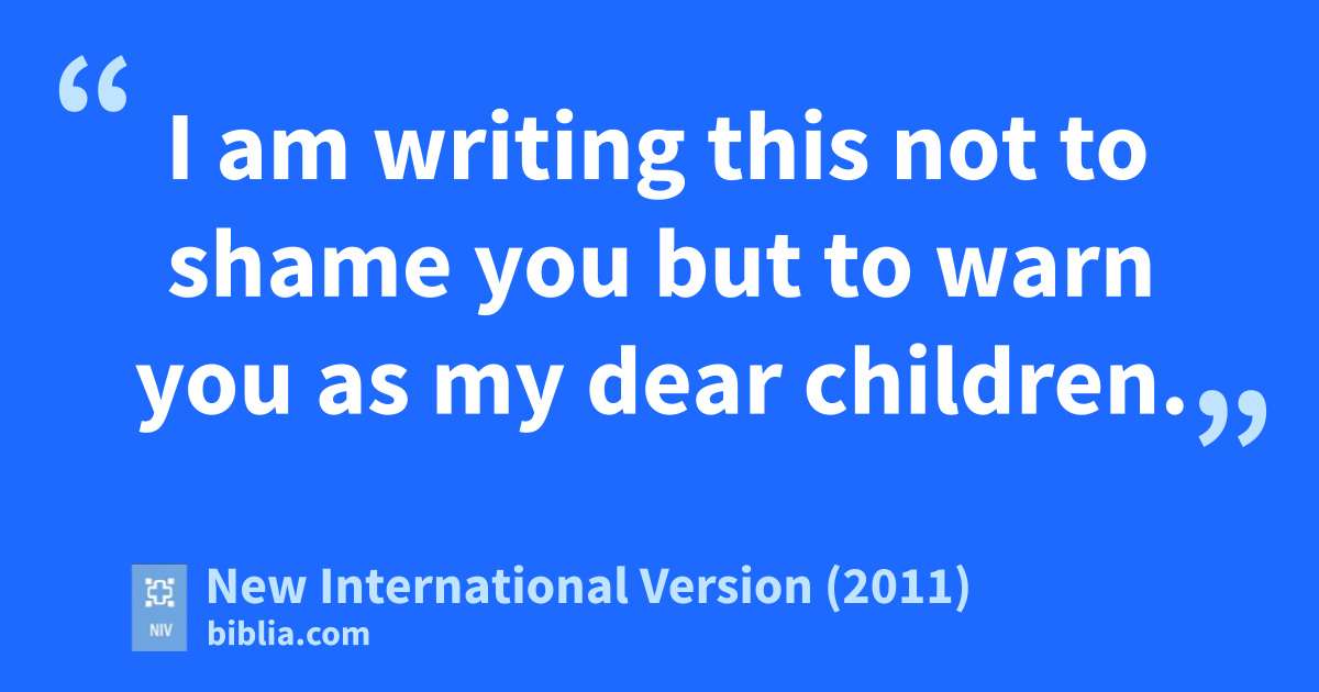 14 I am writing this not to shame youv but to warn you as my dear children.w 15 Even if you had ten thousand guardians in Christ, you do not have many fathers, for in Christ Jesus I became your fatherx through the gospel.y 16 Therefore I urge you to imitate me.z 17 For this reason I have sent to youa Timothy,b my sonc whom I love, who is faithful in the Lord. He will remind you of my way of life in Christ Jesus, which agrees with what I teach everywhere in every church.d